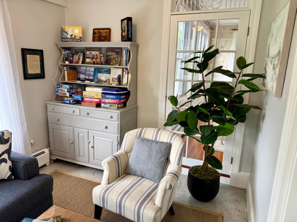 Our outdoor spaces invite relaxation, with a wide front porch that catches the ocean breeze. Take the house bicycles to explore Kennebunkport or head to the shore with our beach towels and chairs. We are an easy walk to both Kennebunkport downtown and the beach.